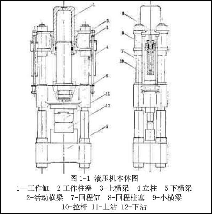 機架部上下橫梁,立柱組成。上下橫梁全部由整體鑄鋼件制作而成,上下橫梁用四根立柱由內(nèi)外螺母連接,承受工作時的張力。